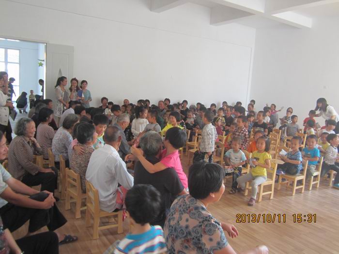 金秋送爽,重阳将至。在这一年一度的老人节将要来到之时,10月11日下午,黄泽镇中心幼儿园后枣园分园在这崭新的多功能厅里,开展了“重晚情,送温暖”活动,提前为村里的老人们送上了一份浓浓的节日祝福。在系列活动中,孩子们亲手为每位老人们送上水果等慰问品,祝愿老人们身体健康,万事如意。各班还为老人们表演事先准备好的文艺节目,有歌舞表演、有个人独唱、有手指游戏……看着表演,老人们个个脸上洋溢着灿烂的笑容。表演结束后,孩子们亲昵地陪着老人聊天,和老人谈家常,说开心事;有的还陪着自己的爷爷奶奶下起五子棋,共享天伦之乐。