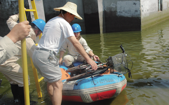 大叔划着自制的木筏将队员们一个个运到水泥杆下,让队员直接登高作业。“这里的路我熟,哪里水浅我都知道的,我给你们带路。”当天下午,这位大叔还热心地当起抢修队员们的向导。