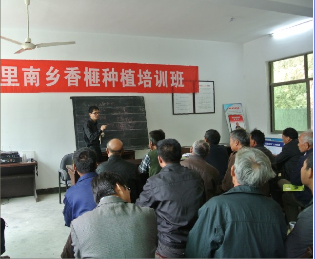 10月17日,里南乡举办了第一期“里南乡香榧种植培训班”,此次培训班的讲师是著名的香榧大师——嵊州市林技推广中心的储开江高级工程师,培训班吸引了里南乡十四个行政村的主职干部、香榧种植户以及对种植香榧有意向的老百姓前来听课。此次培训班分两个部分,先是储大师在里南乡山鸟岭林场的香榧种植基地为学员们现场讲解香榧种植技术,随后在八宿屋村的讲堂里储大师为大家讲了一堂生动全面的香榧种植培训课,主要从香榧产业发展、香榧种植技术、里南乡发展香榧分析等三个方面展开讲解。培训课后,学员们纷纷表示受益匪浅,并且希望以后能多举办类似的农技培训班。