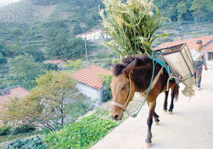 村庄在西白山的山腰上,骡马成了当地村民运输的好帮手。
