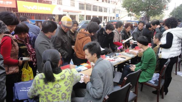 15日上午,长乐镇平安建设领导小组牵头,邀请市平安办、食药监局,联合镇综治、安监、计生等部门,和志愿者们一起,共同举办了平安宣传(志愿者)活动。本次活动包括了宣传资料发放、现场问卷调查、免费测量血压等。群众参与度颇高,现场气氛活跃。
