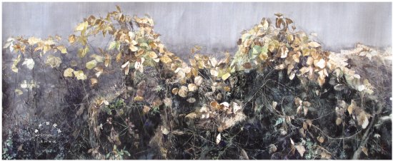 经过多年的锤炼,金孝明的画风已从最初的写实跃进到现在的写意,而他的作品,大部分笔墨都注力于表现“秋风秋叶秋意浓”的意境。《秋天的枯藤》《秋的声音》《秋叶的私语》《晚秋》……他经常将画笔对准植物,从不同角度诠释生命的意义,唱出秋天的歌声。