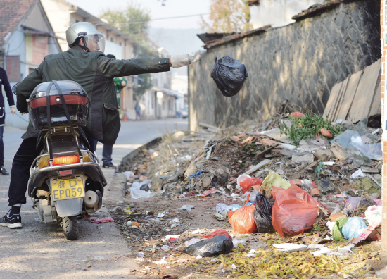 “垃圾房闲置却把垃圾倒在路边,主要是村民不好的卫生习惯所致。有的人为了自己方便,往往顺手一倒,甩手走人。有的人骑电动车懒得停下,用脚一踢踏板上的垃圾,也不管是否能进垃圾房。”村民史锡云正说着,只见一位骑着电动车的男子“呼”地驶过,顺手扔下一袋垃圾,骨碌碌滚到路边,他则扬长而去。