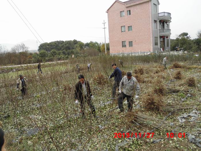 黄泽镇兰洲村是一个远近闻名的苗木花木村,早在上世纪70年代就有许多人从事苗木经营,目前全村1800多人中,懂得苗木嫁接技术的有1000多人,这些苗木嫁接人才,他们不但自己种植苗木,而且外出被人请去做嫁接苗木的师傅,前几年的日工资已是300元,今年再涨到每日400元左右。全村2500亩土地都是苗木地,本村的土地种光了,村民们又在邻村及周边县市去承包土地约1500亩。如苗木户竺根岳前几天就在新昌包了几十亩,许元江等去本市长乐镇了包了几十亩。由于苗木形势好,租田的价也随着高了,前几年是每亩一年租价为500元左右,而今年却猛涨到每年每亩2500元至3000元。即使是目前这个租田价,可大家没有嫌租田的过高,因为兰洲村人搞苗木,他们嫁接不用顾人,小苗的母本与苗接这些材料也是自家有的,这样一来,成本就大大降低了。村委会主任俞焕君说,“目前兰洲村已经成为名副其实的专业苗木村,全体村民都以种植苗木为业。”