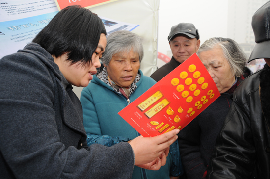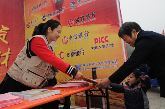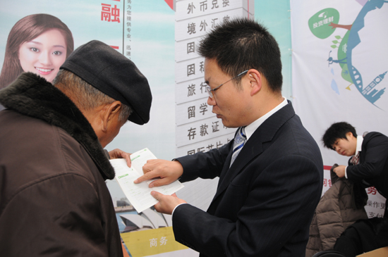 工作人员分发理财节活动相关宣传资料