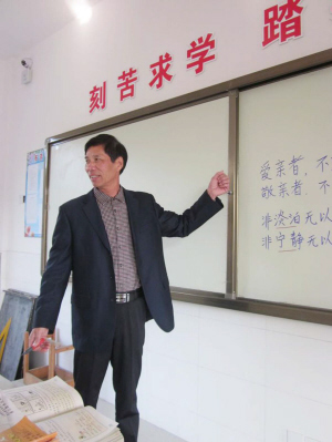 祝金土老师在蒋镇山区这个相对落后的教育战线上,一干就是30多年,始终站在教学第一线,并一直担任班主任。他说,当老师“没有最好,只有更好”,他将继续在自己所挚爱的农村教育岗位上发挥自己的光和热。