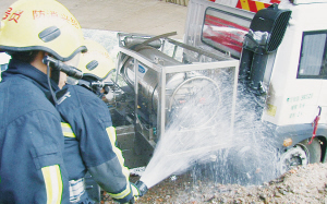 经过现场勘察和询问知情人士,消防官兵得知液化气味来自浙B·8N923集装箱货车发动机。这是一辆使用液化气的燃气发动机车,该车发动机在事故中发生撞击,已经破裂泄漏液化气,若不及时处置将会出现险情。消防官兵迅速出一支水枪喷雾稀释气体,并及时调来大功率水罐消防车保证足够供水。至当日上午9时01分,液化气全部得到稀释,险情被成功解除。