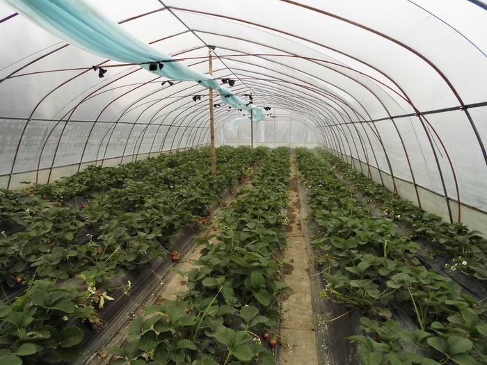 近日,笔者去坐落在嵊张公路边,黄泽镇光明村的草莓田里采摘上市不久的草莓,当我走进大棚内,发现这里的草莓植株,青青翠翠,放眼望去,许多红红的草莓已经成熟,让人垂涎欲滴。此时笔者偶然发现,在这翠绿的每二棵草莓树枝中间种着一株大蒜,一时,我感到特别新奇,多年来,我采摘了许多草莓,进过许多草莓大棚,而在草莓垄里种着大蒜,还是第一次,于是,我问主人王栽三说:“老王,你在草莓垄上种着怎么多大蒜做什么?”此时,老王他没有正面回答我的问题,却说:“你看,我种的草莓长得健康吗?”我说:“健康”,然而他给我讲述了草莓垄里种大蒜的其中道理:“自己种草莓已经好多年了,如何防虫是种植过程中的一大难题。因为一来草莓没皮没壳,和其他水果相比,在农药的施用方面更需要谨慎和遵守规范。二来,随着对食品安全的越来越重视,人们更愿意接受无公害的农产品。怎么能做到既防虫又无公害呢?通过了请教水果专家后,才有了这一招,现在发现虫子好像特别怕大蒜的味道,而且今年的草莓什么白粉病、霜霉病等都没有了。”于是,才有今年草莓棚里种大蒜的一幕。
