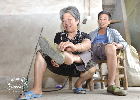 原来陈荣伟19岁时便患有骨髓炎,右腿腿脚僵直得像一段木头,不能屈伸,只能直脚挪步,由于自己两只手根本够不到脚尖,所以穿脱裤子、鞋袜,都得靠别人帮忙才行。