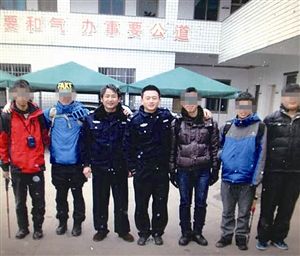 5名学生获救后,和救援民警合影以示感谢 通讯员 供图