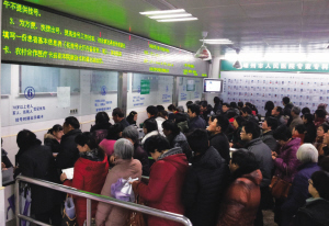图为市人民医院挂号大厅。