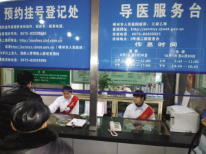 ▲图为一市民在市人民医院的“预约挂号登记处”咨询。