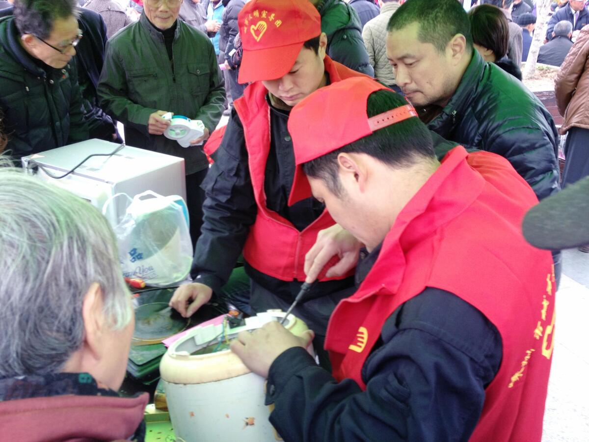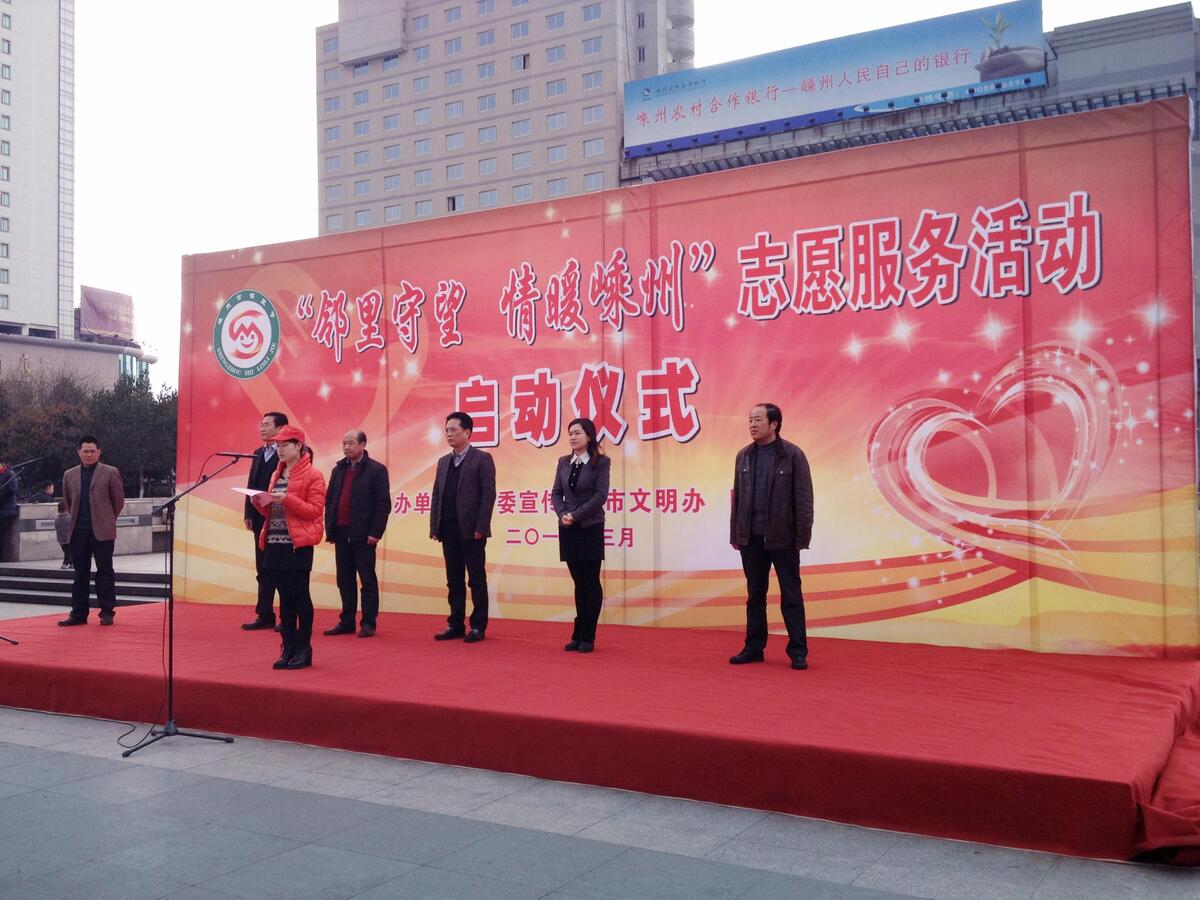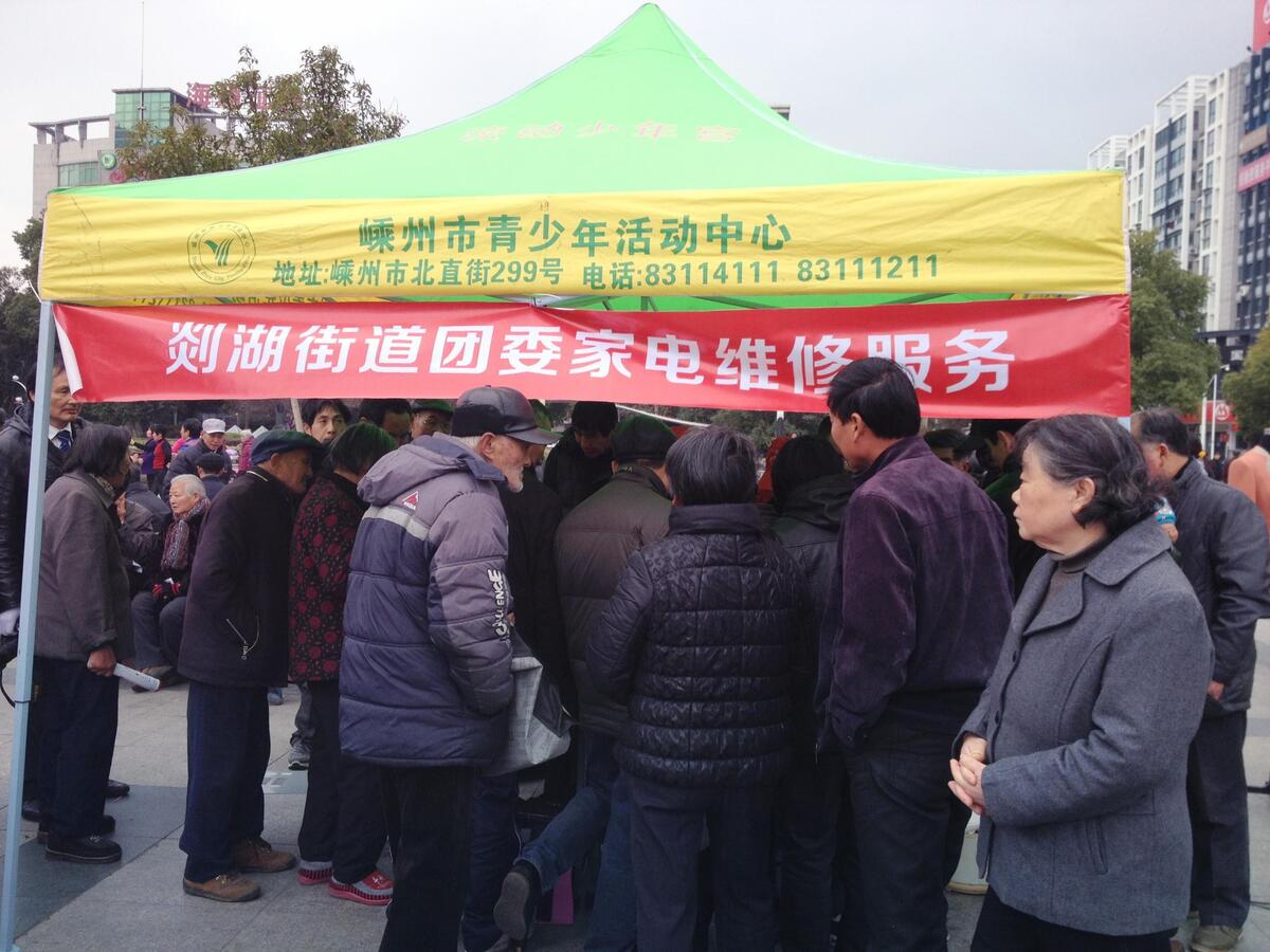 2014年3月5日上午,由市委宣传部、市文明办、团市委联合主办的“邻里守望 情暖嵊州”志愿服务活动启动仪式在文化广场举行。我街道积极响应参与志愿服务,派出志愿小分队为广大市民开展家电维修服务,传播学习雷锋好榜样的爱心奉献精神。