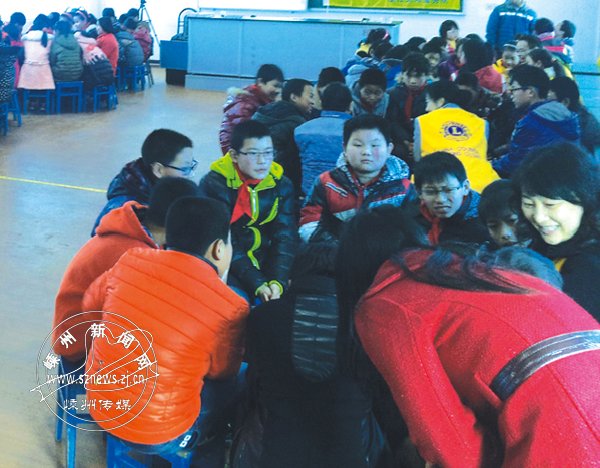 这群特殊的志愿者来自浙江狮子联会太阳服务队。浙江狮子联会是中国狮子联会的一支分队,主要从事慈善服务和社会公益事业。太阳服务队的队长吴碧云是我市三界人,她告诉记者,他们这个队总共有34名志愿者,都是来自各个城市的企业老总和高管,之前他们一直在从事助学和助残,一个月有10天时间奔走在山区学校和外来民工子弟学校,这天他们一大早从各个城市赶到嵊州。