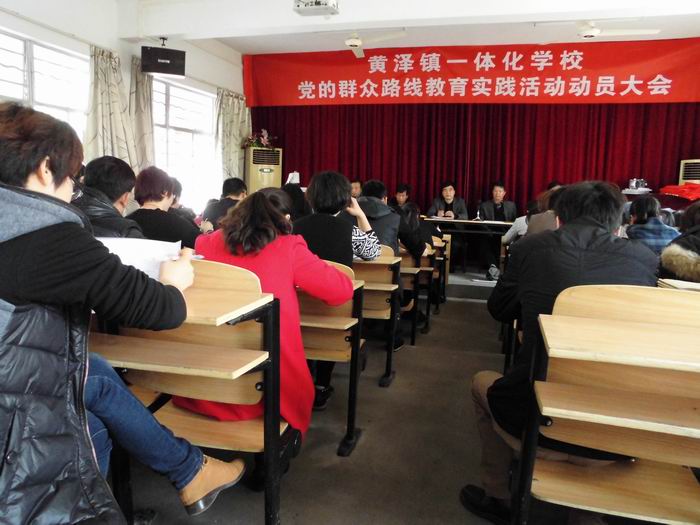 3月17日中午,黄泽镇一体化在黄泽镇中心小学多媒体教室召开党的群众路线教育实践活动动员大会,镇中心学校党总支书记、局责任督学及全体中心小学教师参加会议,会议由副校长董少波老师主持。