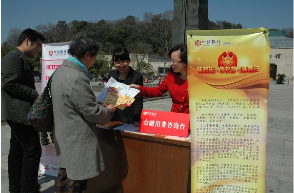 3月15日正值新消法公布实施之日,中信银行绍兴分行在绍兴博物馆广场前开展了以维护金融消费者权益为主题的宣传教育活动,本次宣传活动的重点为“新消法”规定的“安全权、知悉权、选择权、公平交易权、索赔权、受教育权”等六项权利,通过在人流密集的广场开展宣传,有助于金融消费者进一步准确理解自身的各项法定权利和义务。与此同时,中信银行绍兴分行还以网点大厅为阵地,依托市区所有营业网点积极向前来办理业务的金融消费者宣传新消法内容及理财投资风险、银行卡诈骗、非法集资等与消费者关系密切的热点知识,持续普及金融知识,维护金融消费权益,共创金融和谐环境。