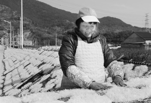 这几天,在嵊州市甘霖镇殿前村,榨面生产大户张炎富忙得不亦乐乎。他家的榨面非常行俏,有不少客户取号排队等货。