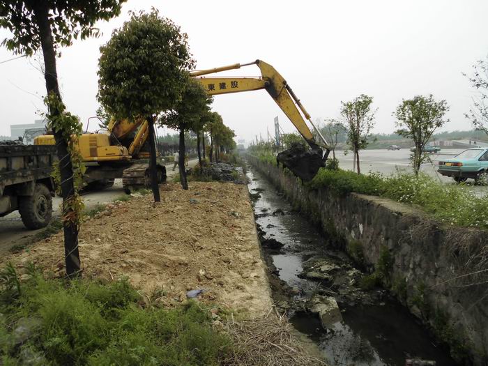唐叶村沿仙黄公路边的这条水渠是一条集村民排污及有关农田灌溉的主渠道,水渠宽约2米,深约3米,由于渠水较脏,再加渠深淤泥积沉深厚,本来可以从村中顺畅排出的流水,近年来已变得淤积,流水不畅,百姓反映强烈。针对这个现实,村两委会积极组织力量并在上级有关部门的支持下,列出专项基金,动用长臂挖掘机、搬运车辆等对水渠进行了较为彻底的清理。