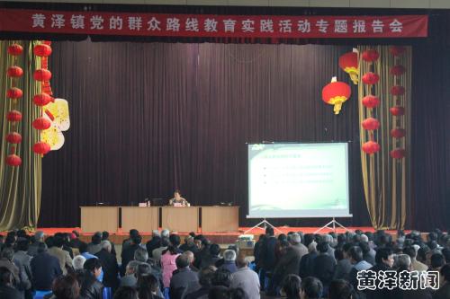 4月19日下午,黄泽镇在镇中体育馆举行党的群众路线教育实践活动专题报告会,镇党委书记王建勇作《深入践行群众路线,以优良作风推进黄泽跨越发展》主题报告,李江副书记主持会议。千余名农村党员干部、各片有关干部等认真聆听党课。