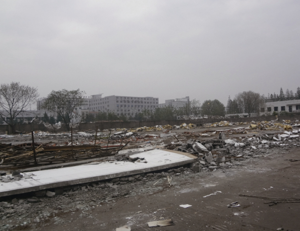 4月21日,三江街道(城南新区)拆除了原普适尔旧厂房区附属楼,至此,原普适尔旧厂房区已经全部拆除。据了解,原普适尔旧厂房区占地近50亩,建筑面积约4.9万平方米,原是普适尔制冷设备总公司的厂房,自2005年公司停产后,被临时改建为停车场、健身房、球馆等用以出租。