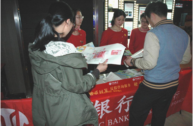 该行抽调多名业务骨干在咸亨国际影城和绍兴文理学院进行现场宣传,在票务大厅的显眼位置设摊并摆放反假宣传以及小面额现金供应管理办法等相关资料,为来往市民无偿提供小面额人民币及硬币兑换服务。为进一步提升宣传效果,该行特别制作了反假货币宣传视频在影城中信厅大银幕滚动播放,引起了观众的热烈反响。