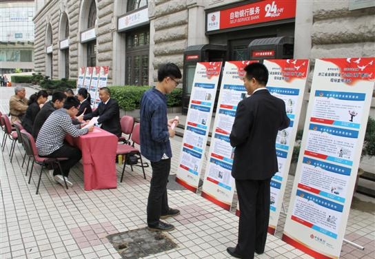 为加强安全防范知识的宣传和普及,进一步提高广大人民群众安全防范意识和能力,5月5日,浙江省公安厅、浙江银监局联合启动了金融安全“心防工程”建设工作并组织开展了宣传日专题活动。中信银行杭州分行积极响应,在“心防工程”启动当日,组织全辖机构在杭州、绍兴、嘉兴、台州、义乌、丽水、舟山、湖州等地设立了33个宣传点,以“防范电信诈骗”为主题,向社会公众现场集中宣传金融安全防范知识。