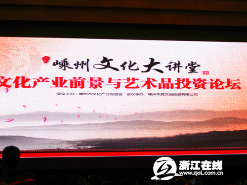 “东南山水越为最,越地风光剡领先”,风景绮丽的嵊州市,历史上就吸引了无数艺术大师至此,曾成就了著名的剡溪唐诗之路。5月10日下午在这儿又上演了一场文化盛宴,由嵊州市文化产业促进会与嵊州文化创意产业园联合创办的首季《嵊州文化大讲堂》,暨文创产业前景与艺术品投资论坛开幕,汇集了嵊州八大文创协会成员以及250余位文化及艺术品收藏爱好者齐聚一堂。