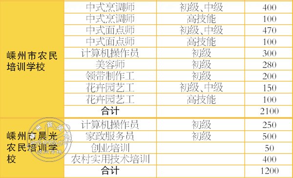 2014年度嵊州市农民培训指导性计划表
