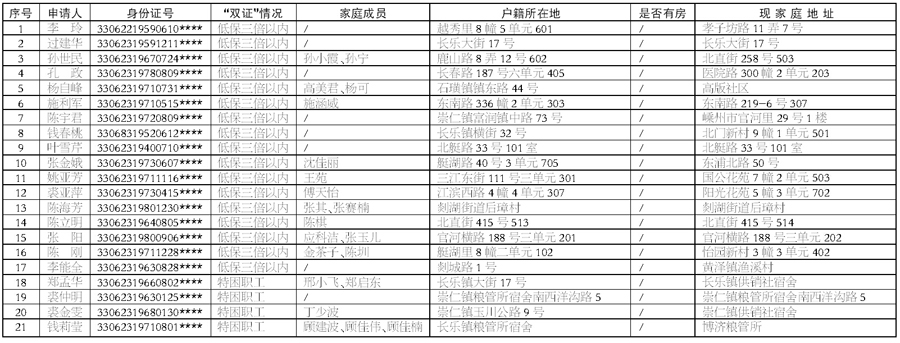经本人申请,乡镇(街道)、民政、建设部门审核,下例家庭(见右表)基本符合《嵊州市廉租住房保障办法》《嵊州市2013年廉租住房实施方案》的相关规定,拟列入廉租住房保障,现按规定向社会公示,公示期7天,自2014年6月10日至2014年6月16日。如对公示的保障对象有异议,请向我们反映,联系电话:0575-83187038。