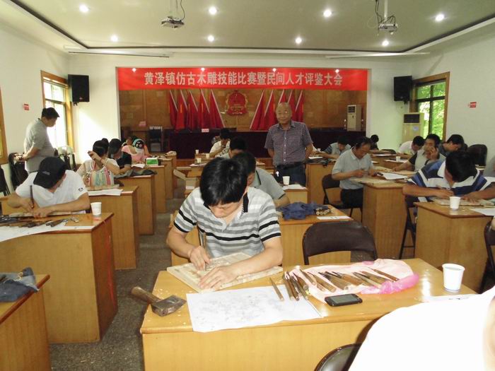 大力开展仿古木雕职工技能竞赛是黄泽镇提高员工技术技能素质、加快技能人才培养和选拔的重要途径。组织木雕作品参加比赛,举办木雕雕刻技艺比赛是黄泽木雕行业员工成长的渠道,也是广大员工学习技术、钻研业务、全面提升木雕技能的良好平台。