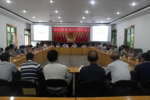 6月26日下午,镇党委邀请各村党支部书记、企事业单位党组织负责人和老党员、老干部代表召开座谈会,交流工作中的好经验、好做法,以此纪念中国共产党成立93周年,大家畅所欲言,会场气氛热烈。镇党委书记王建勇号召全镇党员干部以习近平总书记系列重要讲话精神为统领,始终坚定理想信念,严肃组织纪律,以敢于担当的精神,全心全意为人民服务。镇党委副书记李江主持座谈会,部分班子成员出席。