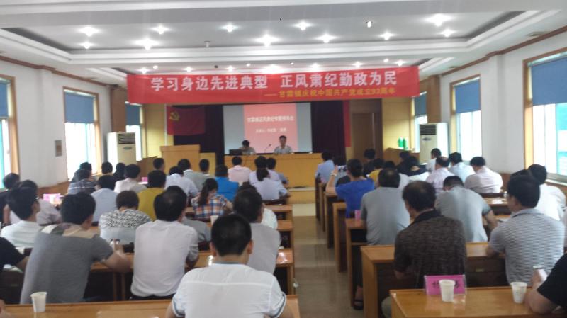 6月27日上午,甘霖镇召开建党93周年“七一”庆祝暨“学习身边先进典型 正风肃纪勤政为民”大会。机关党员干部代表、企业党员代表、所属事业单位党员代表和全体村支部书记共180余人参加会议。会议由镇党委副书记李俊主持。
