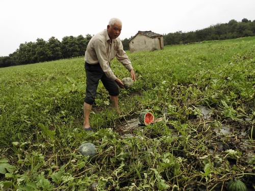 据瓜农俞志木说:“我种植早西瓜已有30年,类似今年这种情况只碰到过2次,其中还有一次是在约10年前,那年也是这样,几乎崩漏雨烂田。如果照正常年份,这些早西瓜约不少于1万元每亩的收入,现在,1千元也没有了。”