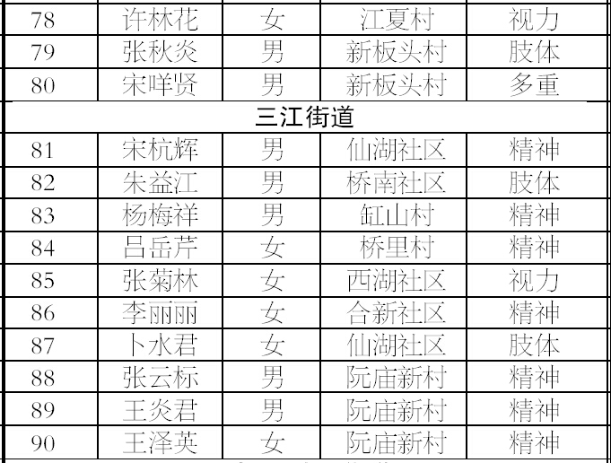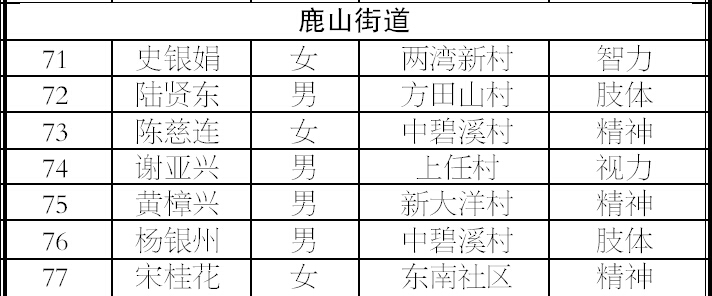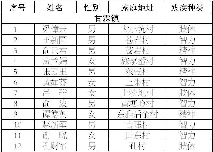 为减轻重度残疾人家庭负担,进一步改善重度残疾人生活状况,根据《嵊州市人民政府关于实施残疾人共享小康工程的意见》(嵊政〔2008〕89号)和《嵊州市重度残疾人托(安)养工程实施办法》(嵊残联字〔2008〕31号)文件精神,经初步核定,梁樟云等147名符合条件的重度残疾人纳入居家安养,现予公示,公示期为7天。公示期内接受社会和广大残疾人的监督,对与事实不符的,知情人可用书面形式或电话举报。举报电话:83790223 83122811