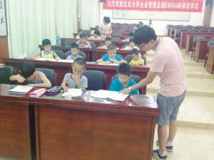 35岁的汤进来自云南,9岁的儿子汤汶霖上小学二年级。他告诉记者,暑假里孩子去哪里就成了一个难题,以前都是让孩子一个人在家,除了做点作业之外,就是看电视,还担心孩子外出玩水什么的。那天看到“100爱心助学公社”到天乐开设暑假班的消息,他立即给孩子报了名,这样既可以让孩子学点知识,又可以让孩子在老师的照看下更安全些。