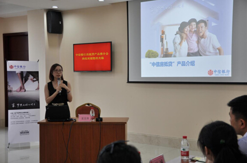 为进一步加大对个人金融贷款的支持,中信银行绍兴分行不断创新产品流程,全力服务金融消费者,于8月1日下午在辖属新昌支行举办了“房抵贷”产品推介会,包括合成房产、绿城置业、三花置业等在内的当地十家知名房产公司、房产中介及县房管局的领导应邀出席,该行个人信贷部产品经理现场授课,活动取得圆满成功。