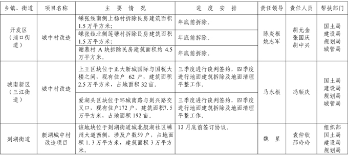三改一拆“百日攻坚”行动城中村改造项目安排表