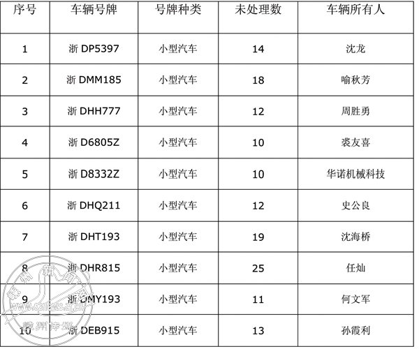 嵊州市5起以上违法未处理车辆列表(十)