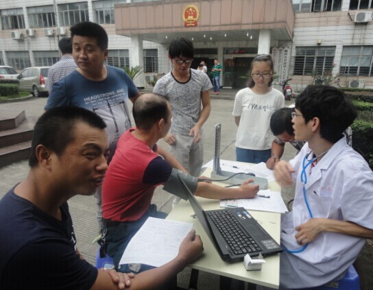 8月15日上午,市献血站医疗人员在甘霖镇政府院内开展无偿献血活动。镇司法所得知情况后迅速组织司法所工作人员和部分社区矫正人员参加了此次无偿献血活动。