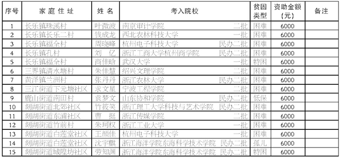 根据嵊慈〔2014〕11号文件精神,经乡镇、街道、管委会调查上报,市慈善总会核实审议,初步确定下列人员为慈善助学对象,现予以公示,公示期为三天,接受社会监督。监督电话:83263559 83263525 83263538