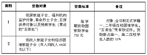 3.国家助学金资助对象和标准是什么? (详见下表)