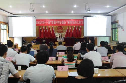 为进一步调动激发我市80后年轻干部的工作积极性、主动性和创造性,营造争先创优的良好工作氛围,9月5日上午,由市委组织部、团市委组织的80后年轻干部“青春·担当·责任”主题演讲比赛(黄泽分赛区)在黄泽镇大会堂举行。