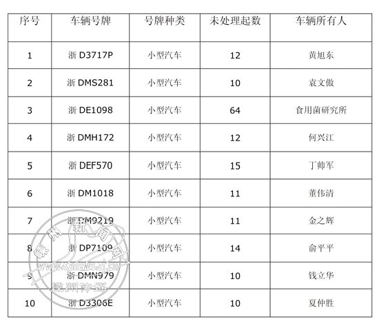 嵊州市5起以上违法未处理车辆列表(十一)