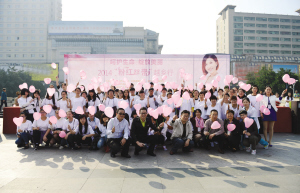 在活动现场,100多名志愿者手拿红色气球,呼吁人们更加关注乳腺疾病,关爱生命。活动吸引了近1000名市民的驻足关注。