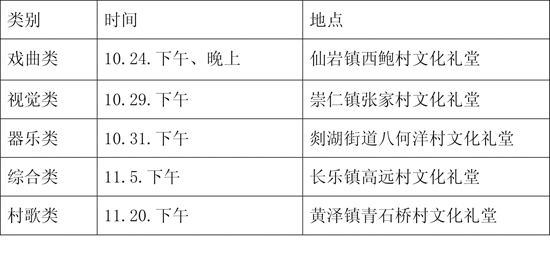 本次活动由市委宣传部、市文明办、市文广新局联合主办,旨在进一步推进农村文化礼堂建设,丰富群众精神文化生活,提升农民文化素养。除舞蹈专场外,近期还将陆续举行村歌、戏曲、器乐、视觉类、综合类等专场赛事。有兴趣的市民,可以去各相关村的文化礼堂看看。所有比赛结束后的11月底,还将选取6个专场比赛中的优秀节目,在文化广场举行大展演。