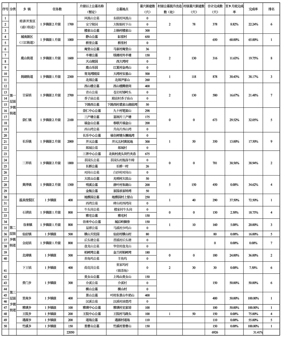 嵊州乡镇生态墓地建设进度表(截至10月24日)