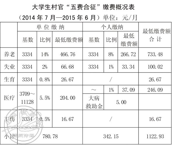 备注:在乡镇、街道农村(社区)工作的高校毕业生(村官助理)的缴费工资基数,根据嵊市组〔2007〕33号文件规定执行。