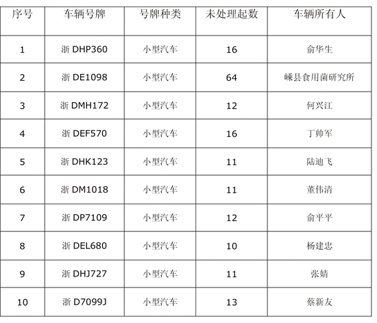 嵊州市5起以上违法未处理车辆列表(十一)