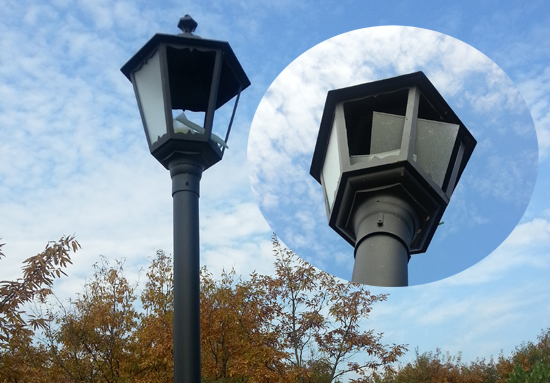 市政管理处路灯设计科工作人员说,尽管不断在修理,但隔一段时间路灯就会添“新伤”。目前,惨遭“黑手”的路灯共有20多盏。图为被破坏的路灯。(如是)