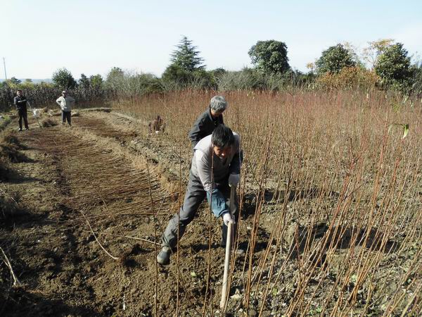 随着冬季的进入,近日来气温聚降,各类桃树叶子在阵阵寒风中已全部落下,黄桃小苗已进入休眠状态后的最佳栽种期。据嵊州市早期锦绣黄桃引种人之一的黄泽镇青石桥村张宗江说:“11年前从上海奉贤引进的锦绣黄桃,在我们嵊州地区通过套袋等技术管理,可以说目前引种完全成功,经济效益已经明显显示,特别是在黄泽,有许多果农,三年前种植的黄桃,一般每亩可收益2至3万元不等,零售价约在每公斤15左右。”又是据沙地自然村张小明说:“他在5年前种植的近200棵黄桃,由于管理到位,地理位置较好,今年收入竟然在11万元之多。”村看村,户看户,由于经济效益的显著,所以种植黄桃的果农越来越多。